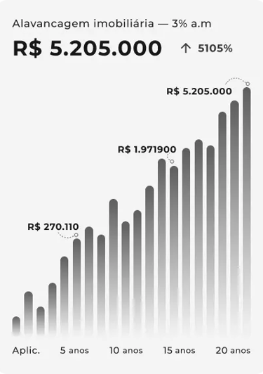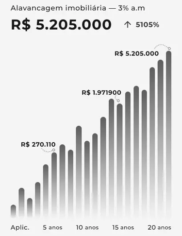 A alavancagem patrimonial permite ao investidor comprar um imóvel com capital de terceiros, onde a rentabilidade do aluguel cobre os custos da parcela, gerando rentabilidade com segurança.